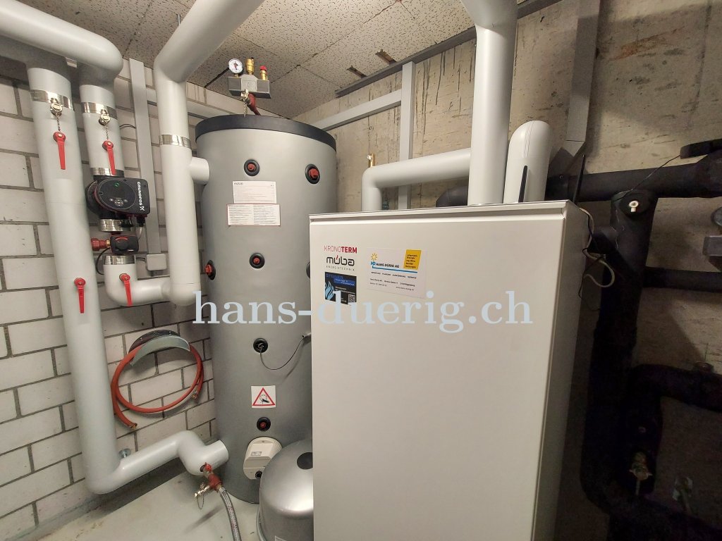 die alte Wärmepumpe wurde ersetzt durch eine neue Erdsonden-Wärmepumpe von Kronoterm/MÜBA vom Typ Etera L. Beim Ersatz von alten Sole/Wasser-Wärmepumpen ist die bestehende Erdsondenanlage und deren Weiterverwendung genau zu prüfen. Im vorliegenden Objekt wurden dazu in der Heizsaison die Erdsondentemperaturen detailliert gemessen. Damit besteht die Sicherheit, dass auch die neue Wärmepumpe mit der bestehenden Quelle sicher weiter betrieben werden kann.
