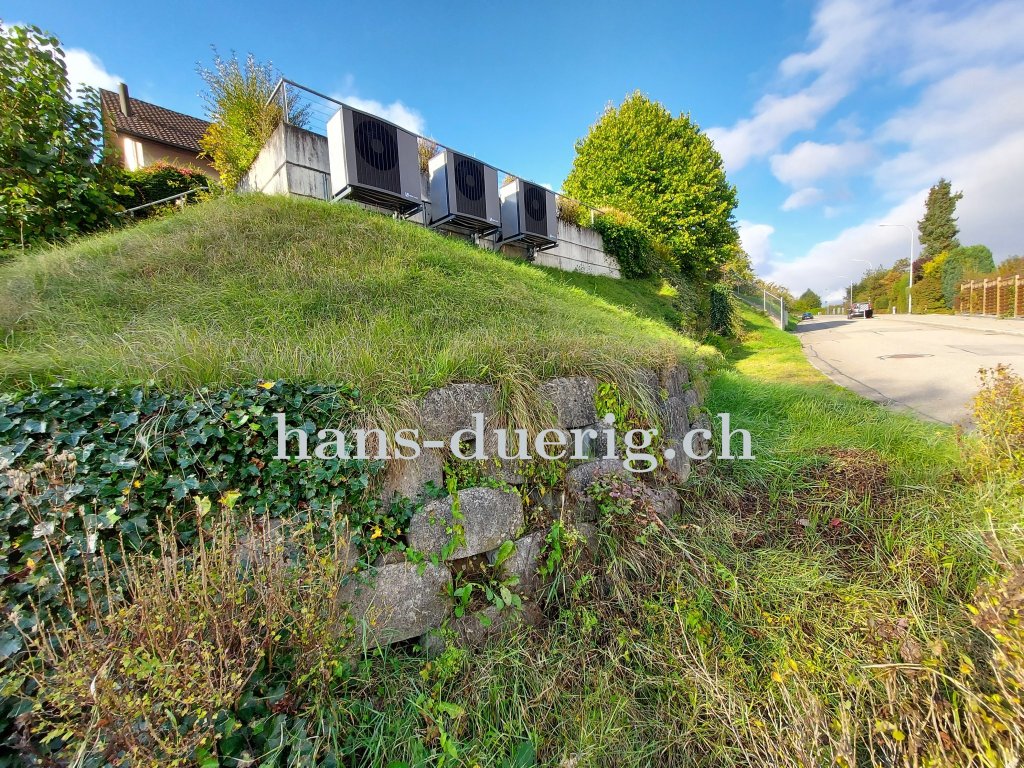 Die bestehende zentrale Ölheizung wurde ersetzt durch eine umweltfreundliche Wärmepumpenlösung. Damit die Heizleistung erbracht werden kann, wurden 3 Standard-Wärmepumpen von Alpha-Innotec eingesetzt. Die drei Luft/Wasser-Wärmepumpen werden in Kaskade, also im parallelen Betrieb eingesetzt. Damit werden 8 Reihen-Einfamilienhäuser mit Wärme für die Raumheizung (Fussbodenheizung/Heizkörper gemischt) versorgt. Für die Anbindung in den Häusern wurden die Regelungen erneuert und die Hydraulik angepasst, so dass diese kompatibel mit der neuen Wärmepumpenanlage ist (tiefe Rücklauftemperaturen).