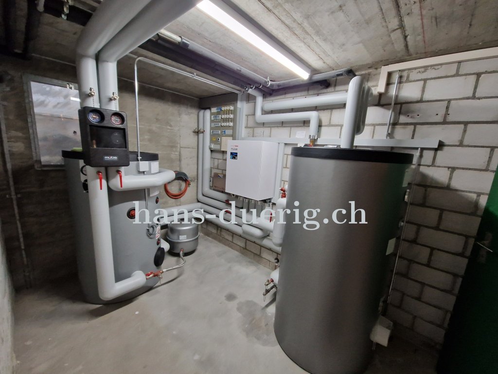 Installation im Technikraum mit separatem Speicher und Warmwasser-Boiler