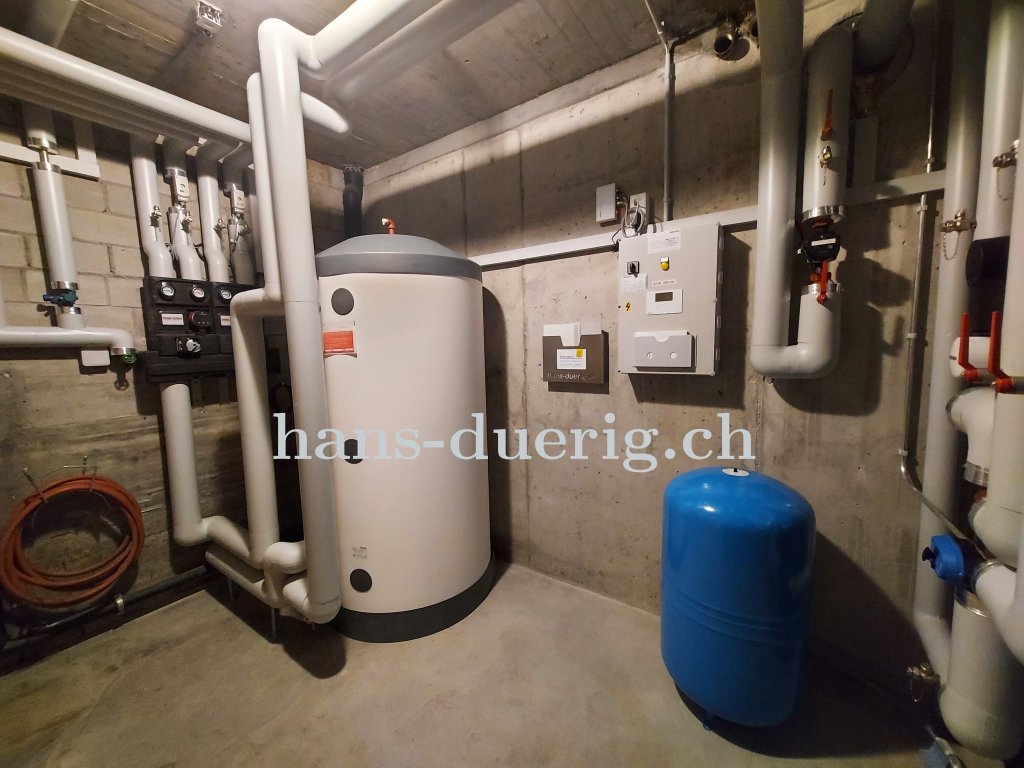 Die Wärmeabgabe erfolgt über zwei Heizgruppen. Mit der Flächenheizung (Bodenheizung) kann im Sommer über die Wärmepumpe auch gekühlt werden. Zudem wird die Wärmepumpe über die Photovoltaik-Anlage angesteuert, damit der Eigenverbrauch optimiert (erhöht) werden kann. Auch die Hydraulik ist für den optimalen Eigenverbrauch optimiert: für die Warmwasseraufbereitung wurde ein Kombispeicher mit 800 Liter Volumen eingesetzt. Damit ist eine hohe Speicherfähigkeit bei optimaler Warmwasserhygiene möglich.