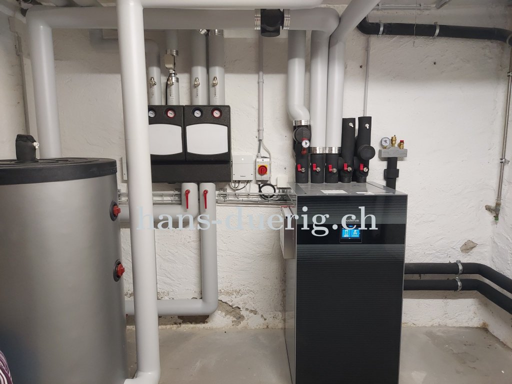 die bestehende Ölheizung wurde ersetzt durch eine Wärmepumpe von BUDERUS/Bosch für die Raumheizung und Warmwasseraufbereitung. Die Wärmegewinnung besteht aus zwei Erdsonden mit einer Länge von je 200 Metern.