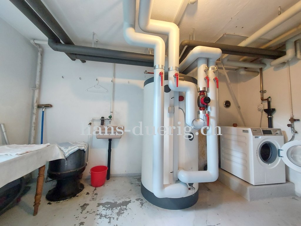 die neu eingebaute Wärmepumpe liefert Energie für die Raumheizung und für die Warmwasseraufbereitung über einen neuen zentralen Warmwasser-Boiler. Die Wärmepumpe WPE-I 33 H 400 Premium von STIEBEL-ELTRON verfügt über einen standardmässig eingebauten Heissgas-Wärmetauscher. Damit kann die Heissgastemperatur am Kompressoraustritt separat für die Warmwasseraufbereitung verwendet werden. Dies resultiert in einer höheren Warmwassertemperatur ohne die Effizienz der Wärmepumpe zu verschlechtern.