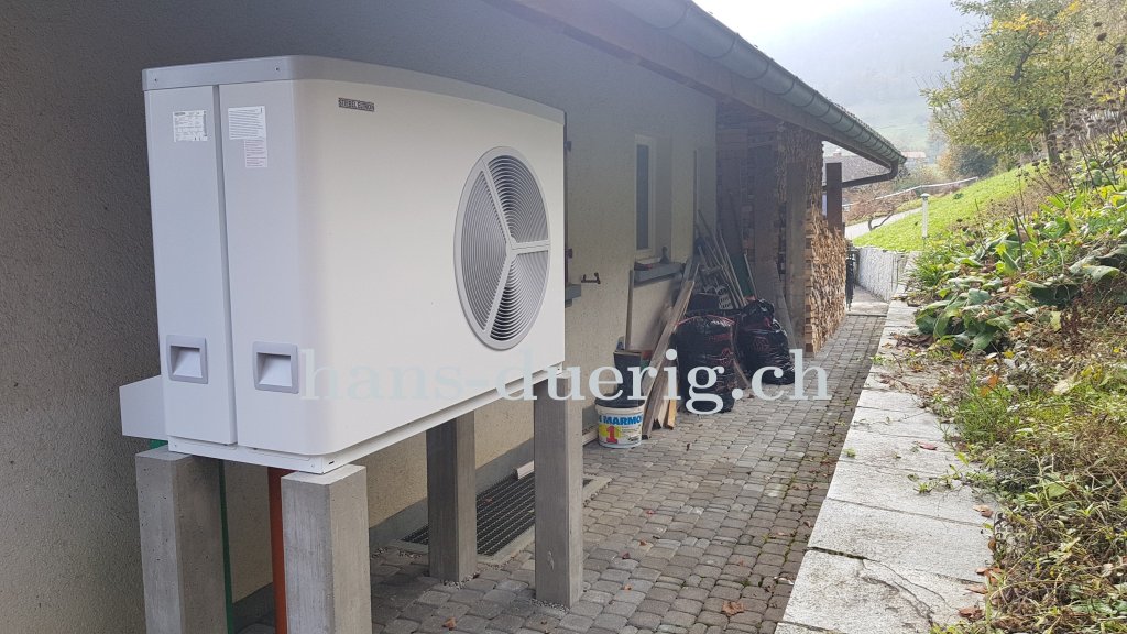 Einbau einer aussen aufgestellten Luft/Wasser Wärmepumpe WPL20A von Stiebel Eltron mit einem Kombienergiespeicher.
